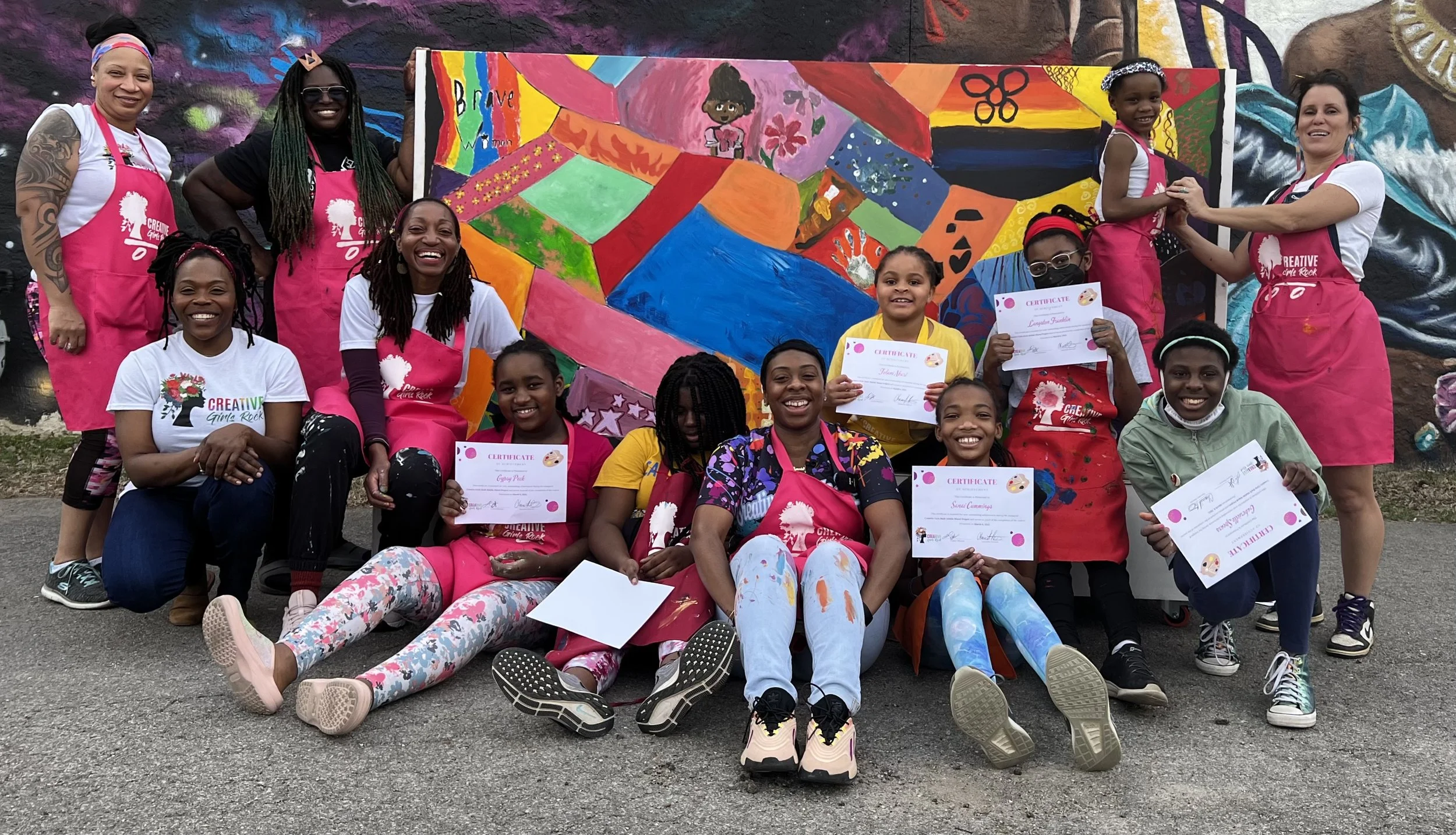 In Spring 2023, Creative Girls Rock launched programming at Purpose Prep Academy, creating a platform for students to develop creative arts skills, personal growth, leadership, and mental wellness. This initiative provided students with hands-on experiences that nurtured self-expression and empowered them through the arts. From this impactful opportunity, Creative KIDS Rock was born—an official program under CGR’s Youth Development Initiative. Creative KIDS Rock now offers creative arts programming and mural development for youth, fostering artistic exploration and community engagement. By July 2023, we proudly completed four murals in collaboration with the students at Purpose Prep Academy, transforming their school environment into a vibrant space of creativity and inspiration.