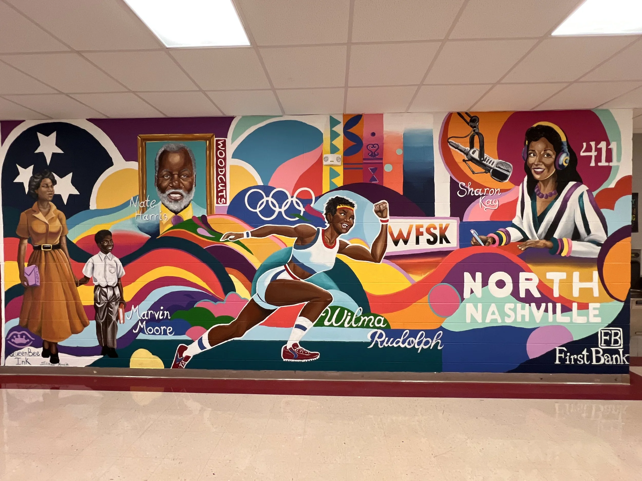 From Marvin Moore's pioneering integration efforts at Jones Elementary School (now Jones Paideia Elementary) to Nathan Harris's influential Woodcuts Art Gallery and Sharon Kay's transformative work with Fisk Jazzy 88, the mural showcases the diverse tapestry of North Nashville's heritage.