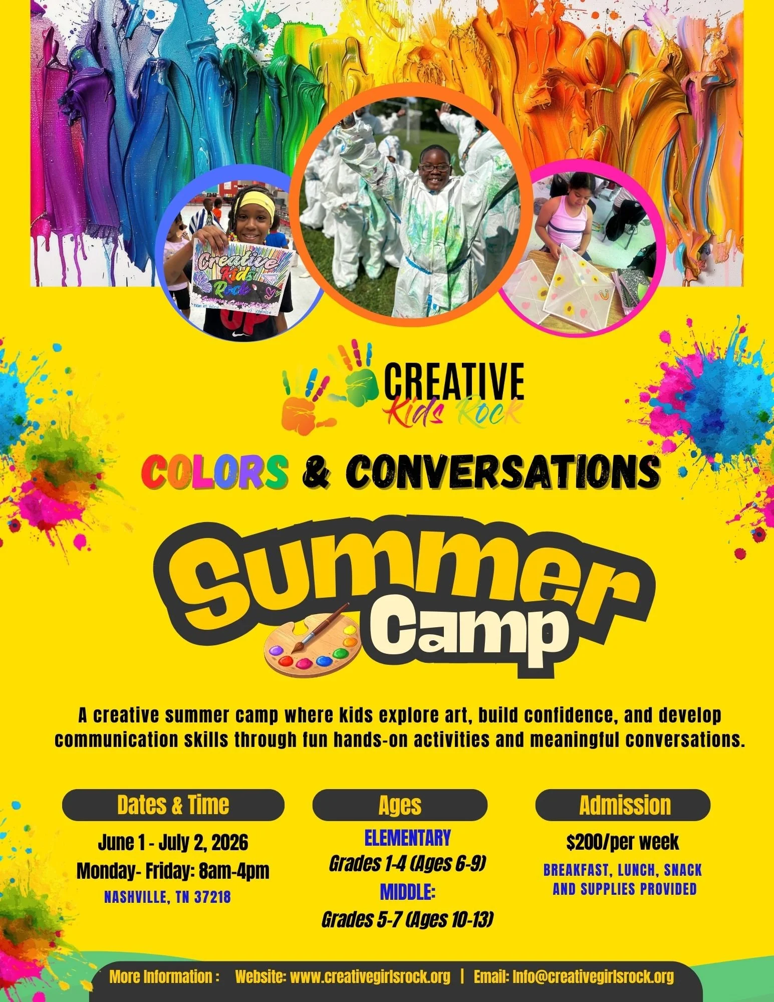 Creative Kids Rock® presents Colors & Conversations Summer Camp, a fun and engaging creative arts experience designed for youth ages 6–13.